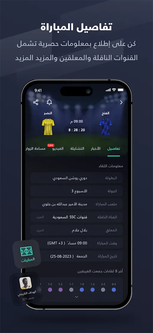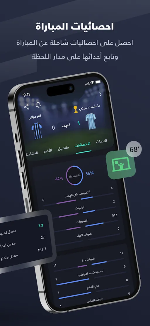 - إحصائيات تفصيلية كاملة : يوفر تحميل تطبيق Yalla Shoot Pro مهكر مجموعة إحصائيات شاملة تغطي جميع الجوانب الفنية والتكتيكية لكل مباراة بشكل احترافي ومنظم. يمكن متابعة نسبة الاستحواذ، عدد التسديدات على المرمى وخارجه، التمريرات الناجحة، الركنيات، حالات التسلل والمخالفات لكل فريق بدقة واضحة. الأهم أن هذه البيانات يتم تحديثها بشكل لحظي أثناء سير المباراة، مما يسمح بتحليل الأداء الفني لكل فريق في الوقت الحقيقي. هذه الميزة تجعل التطبيق مناسبًا ليس فقط للمشاهدة، بل أيضًا لمحبي التحليل الرياضي الذين يهتمون بالتفاصيل الدقيقة للأداء داخل الملعب.